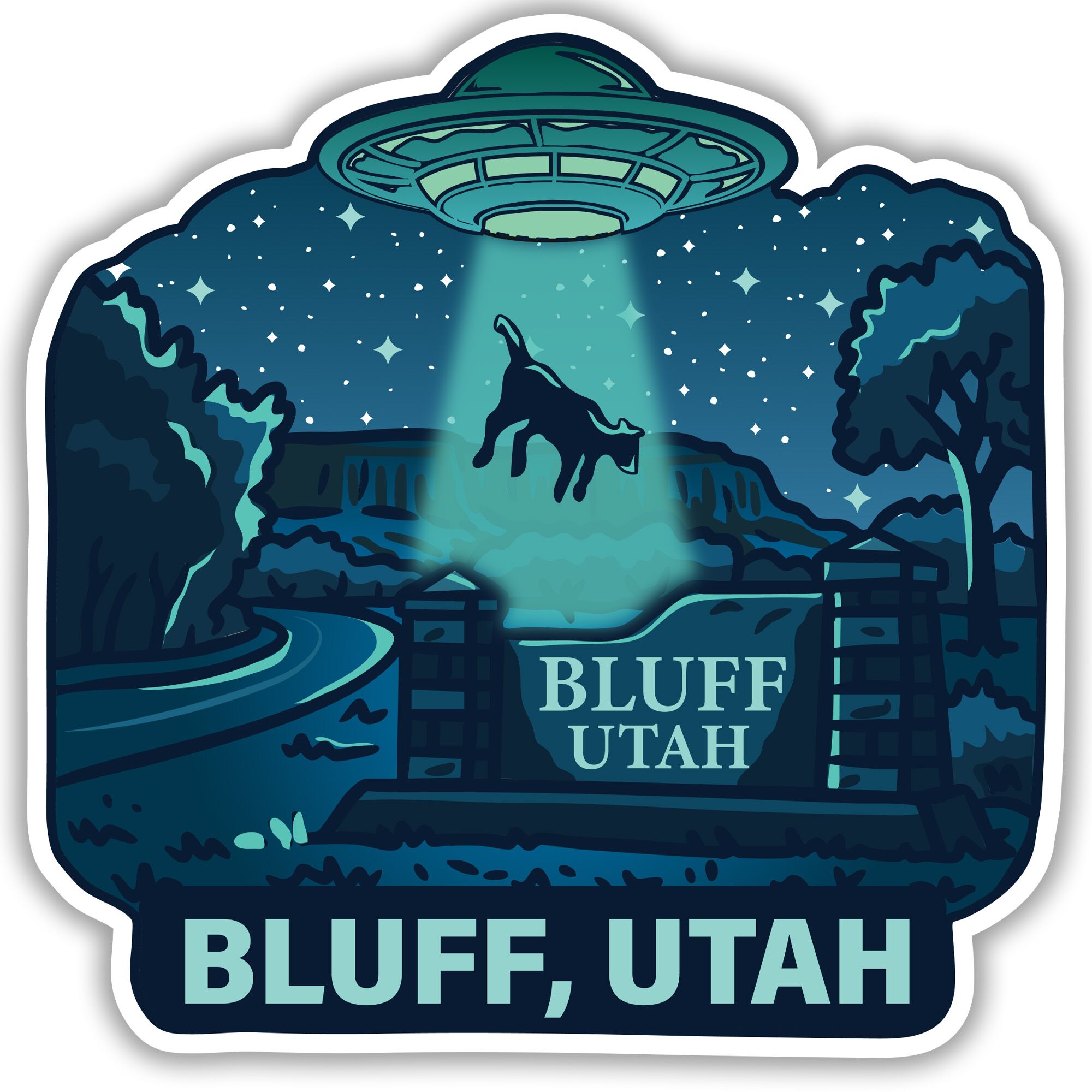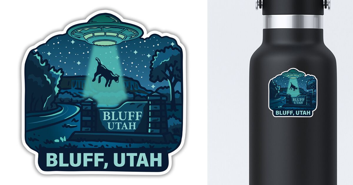 Vinyl Bluff Utah Alien Sticker. This sticker is waterproof, weather resistant, and very durable. It’s great for water bottles and any solid flat surface.
