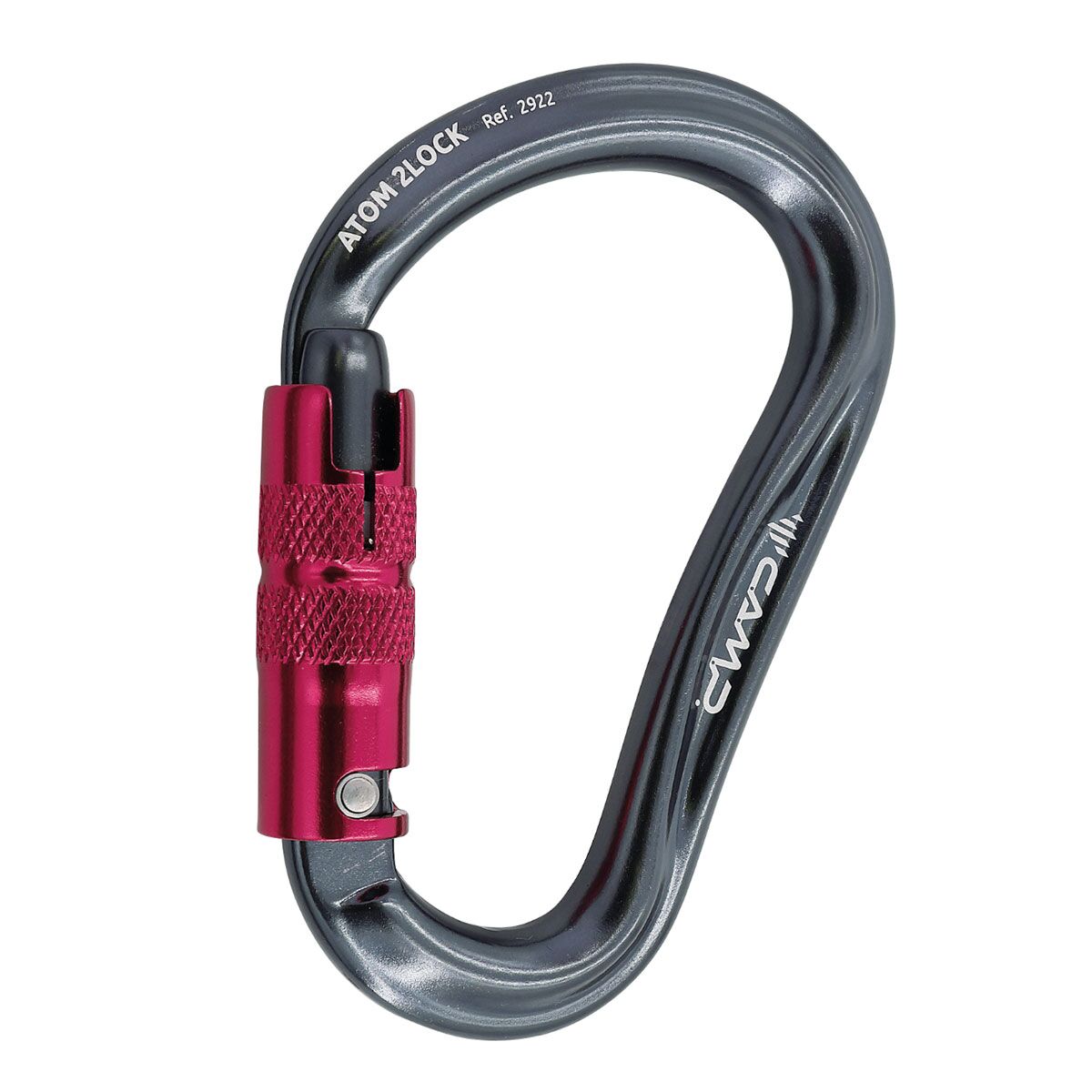The Atom 2Lock is a high-strength HMS carabiner designed for belaying and rappelling. The SphereLock nose combines with a large gate opening to make clipping ropes and webbing easy. The automatic lock requires two actions (twist and pull) to open.