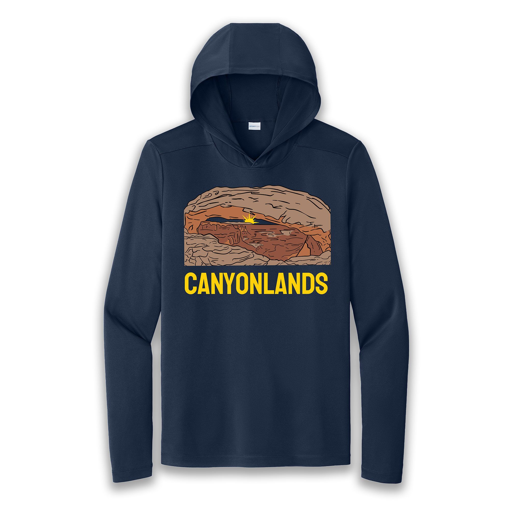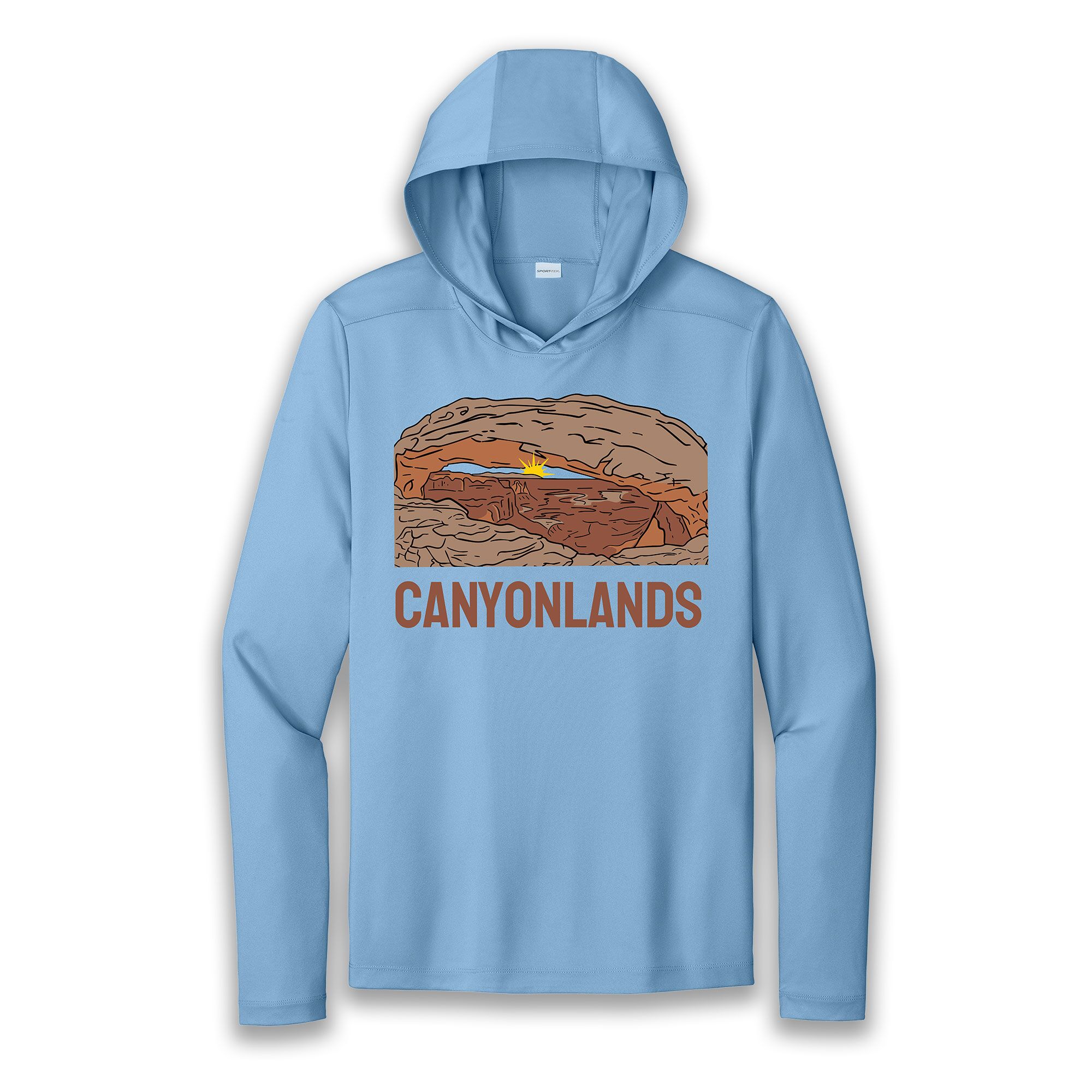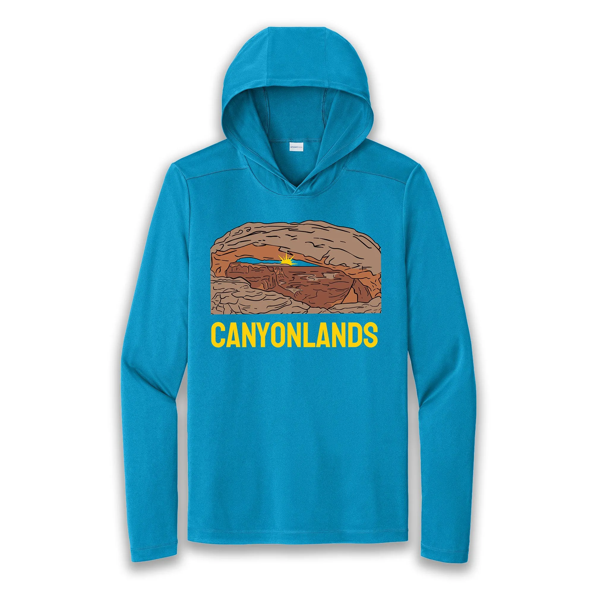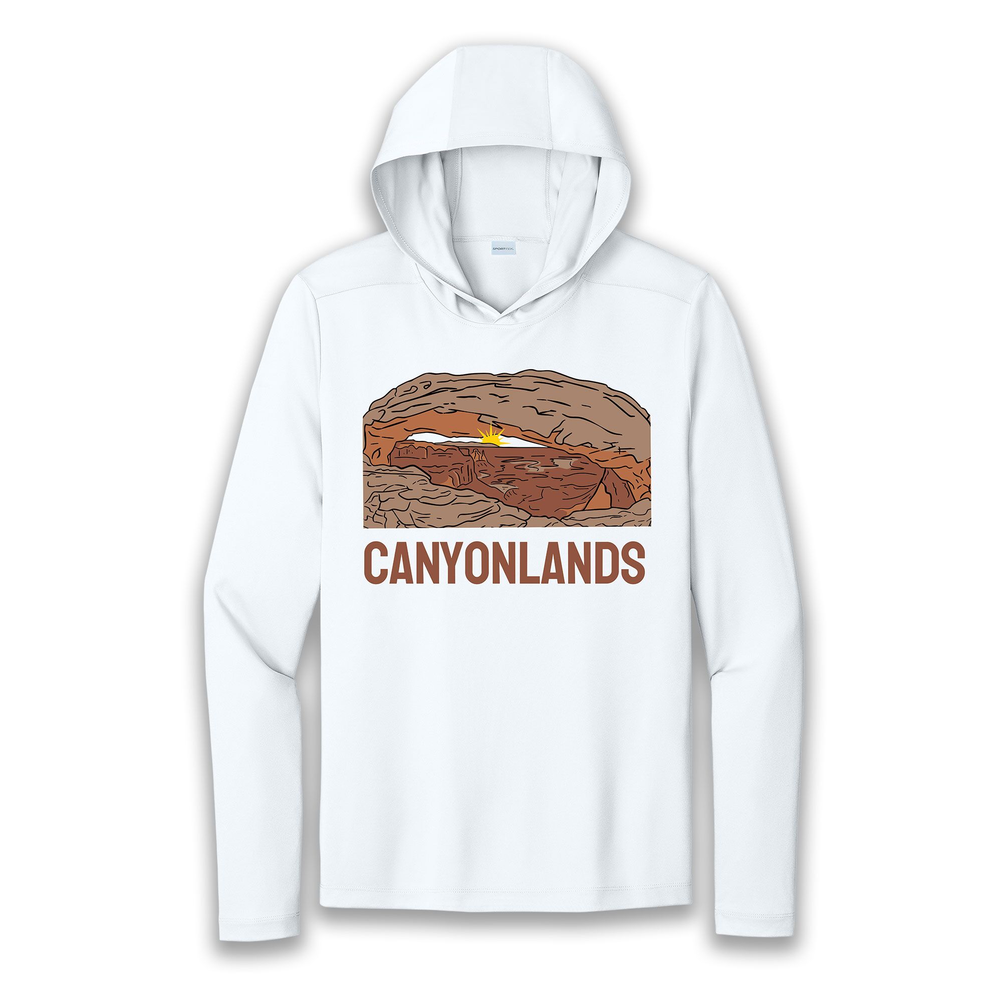 Canyonlands Sun Hoodie featuring Mesa Arch. This sun hoodie is 100% polyester with a UPF rating of 50. Extremely soft and so uber comfortable.