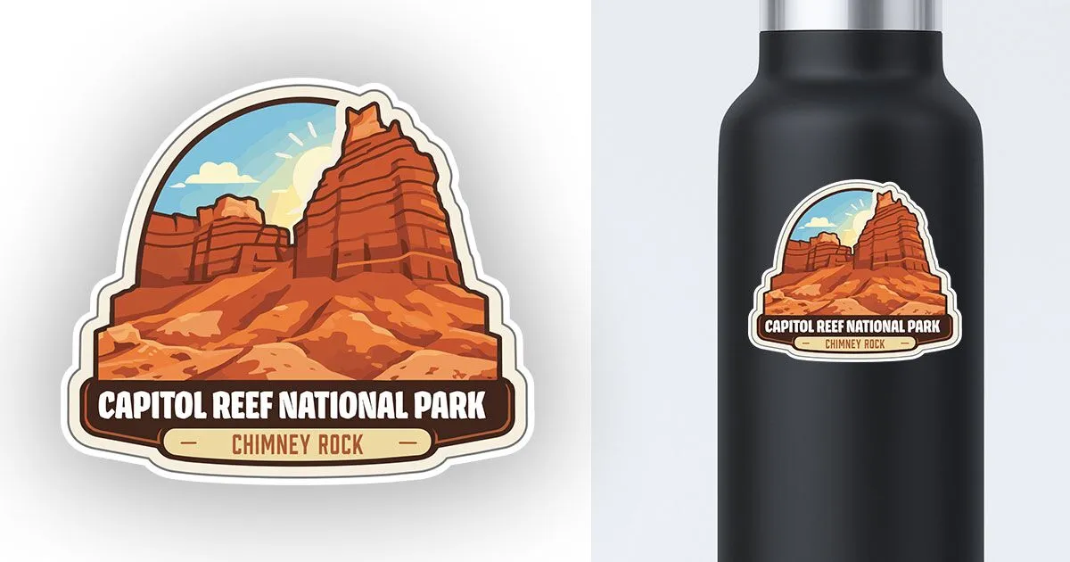 This Capitol Reef sticker features Chimney Rock that is just inside the park. This vinyl sticker is dishwasher safe. It withstands water and sunlight.