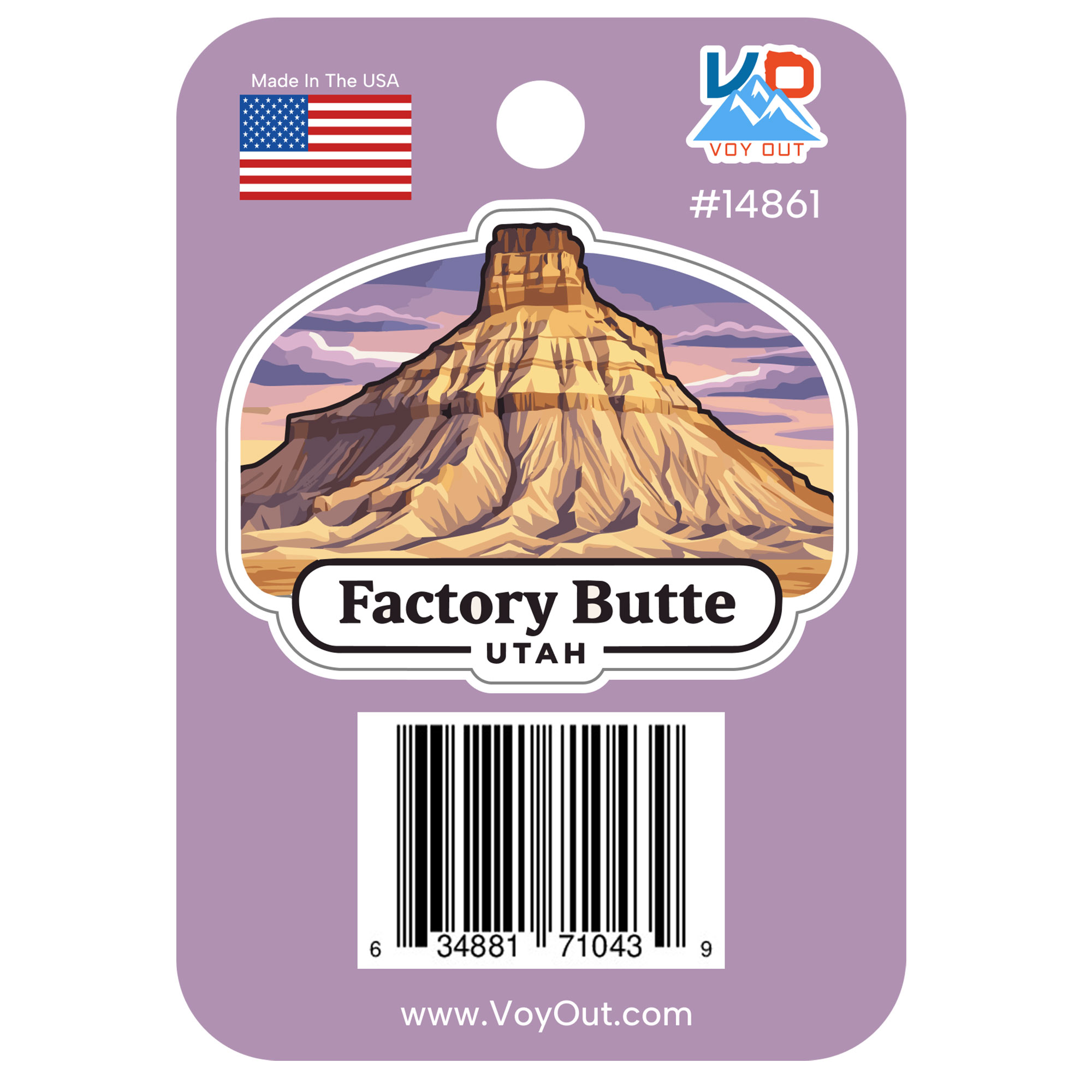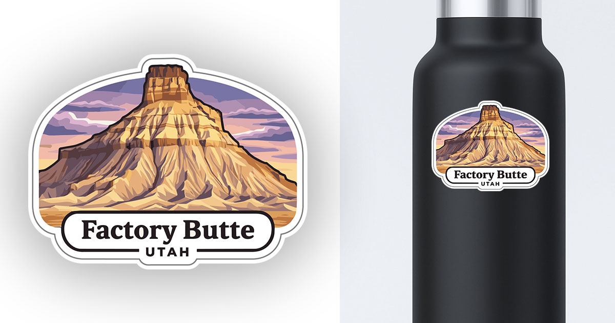 Vinyl sticker featuring Factory Butte near Hanksville, UT. Great for water bottles, coolers, or any smooth solid flat surface. Dishwasher safe.