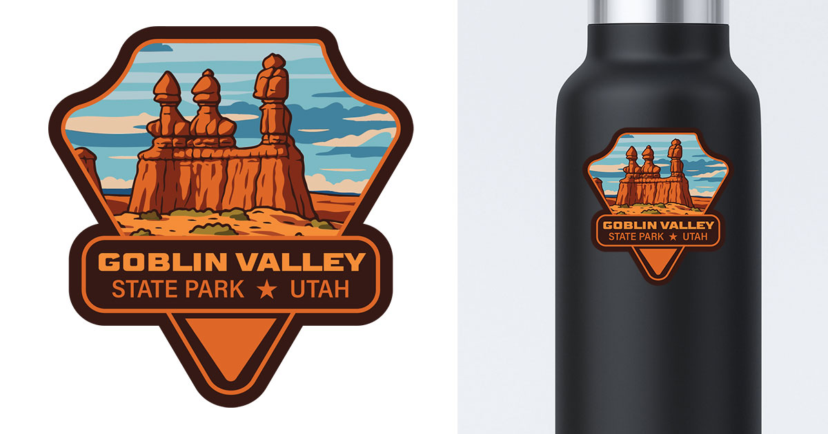Vinyl sticker of Goblin Valley State Park in Utah. Great for water bottles and any smooth flat surface. Dishwasher safe Goblin Valley sticker.