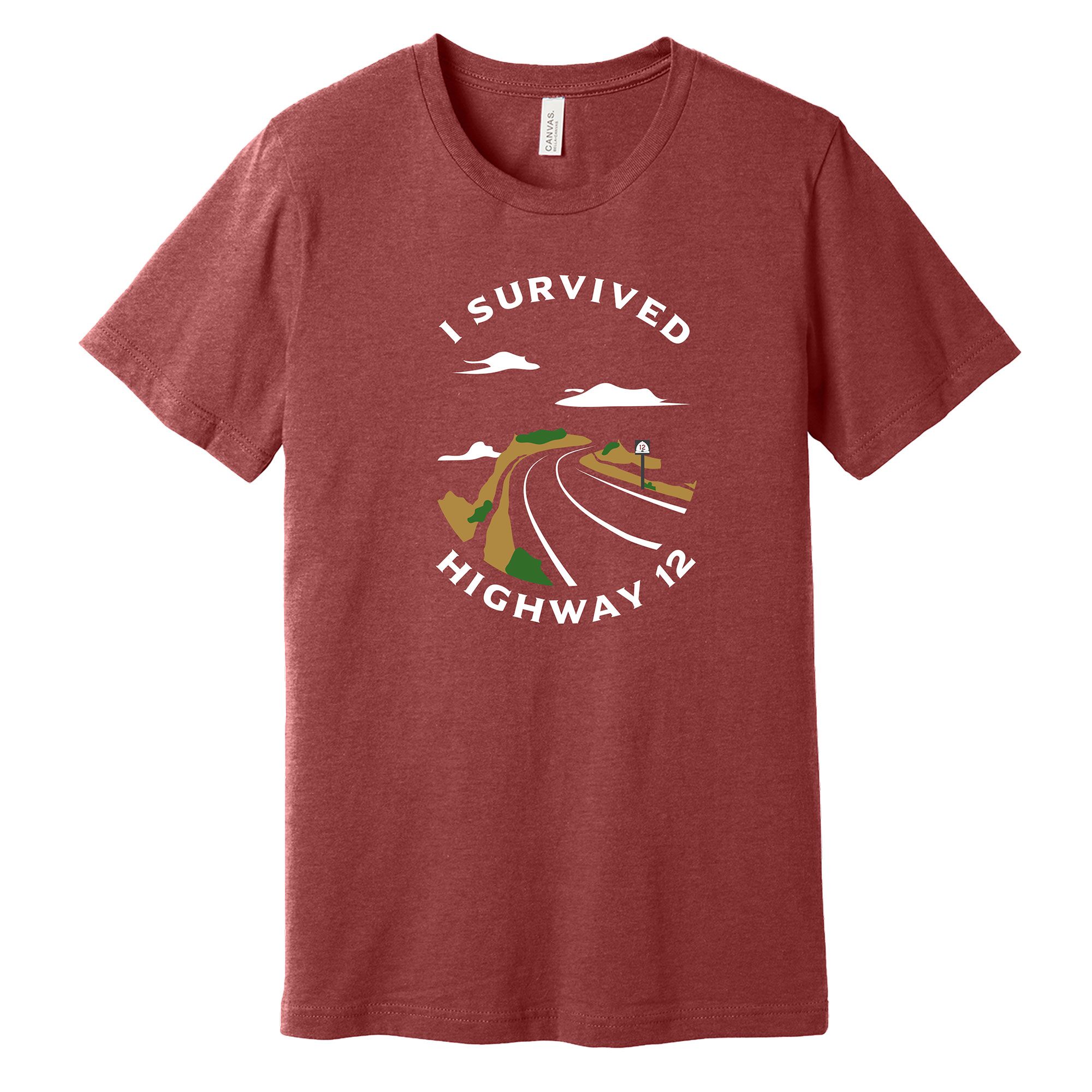 This Highway 12 T shirt shows a winding road like you see on the sketchy Highway 12. Cotton / Poly blend shirt for a super comfortable fit.