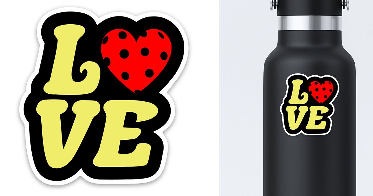 This pickleball sticker feature a heart that looks like pickleball. Get this sticker for your water bottle, your cooler, or any solid flat surface. Vinyl sticker.