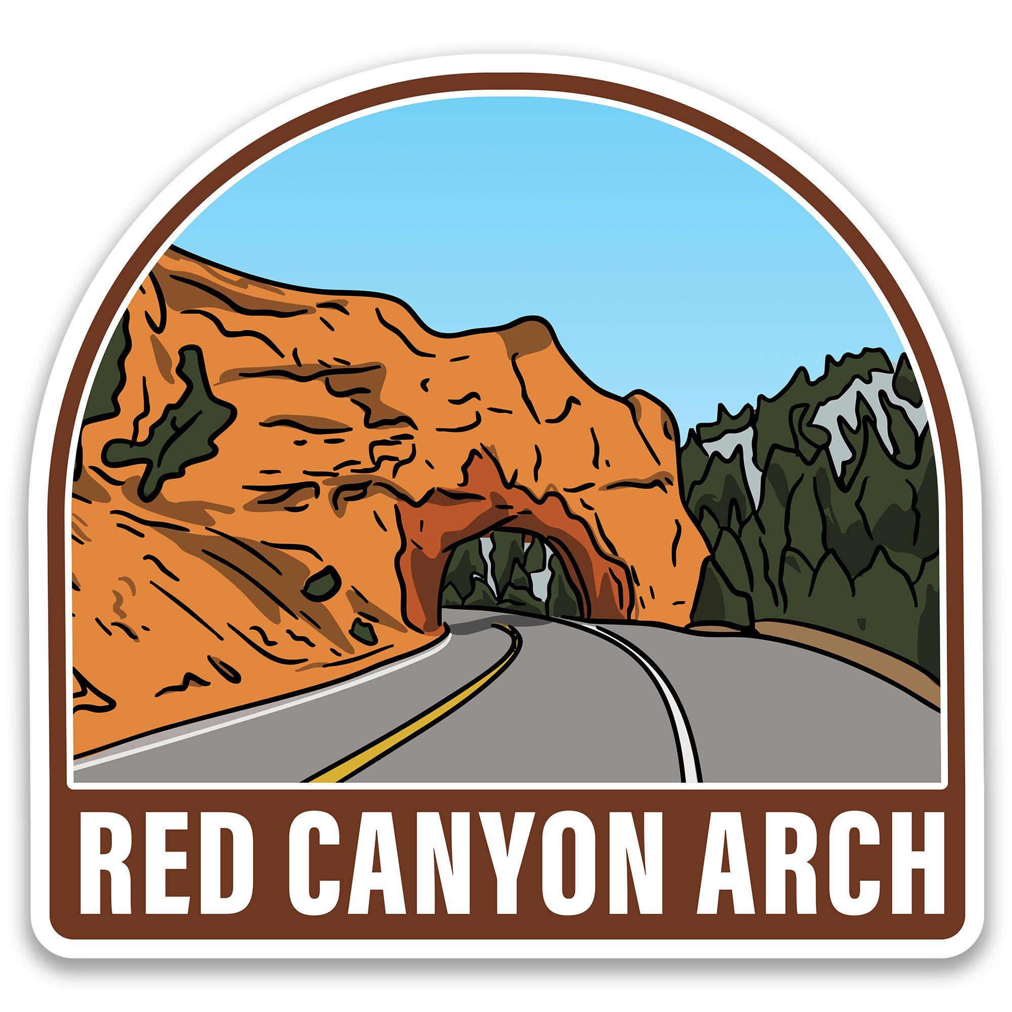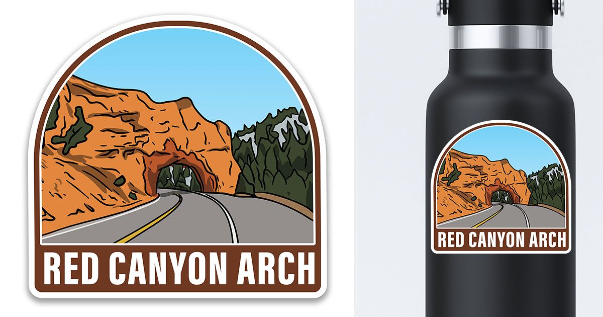 Red Canyon sticker featuring the arch as you enter Red Canyon headed towards Bryce Canyon National Park. Vinyl sticker great for water bottles.