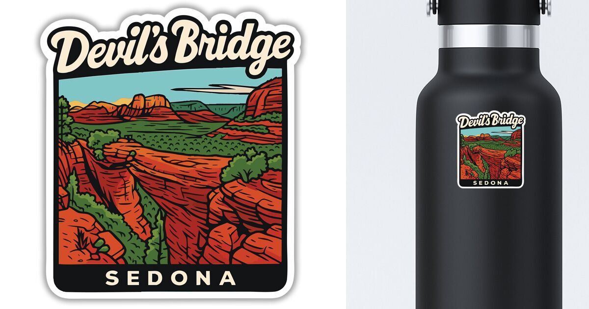 This sticker features the Devils Bridge in Sedona, Arizona.