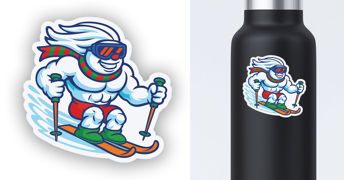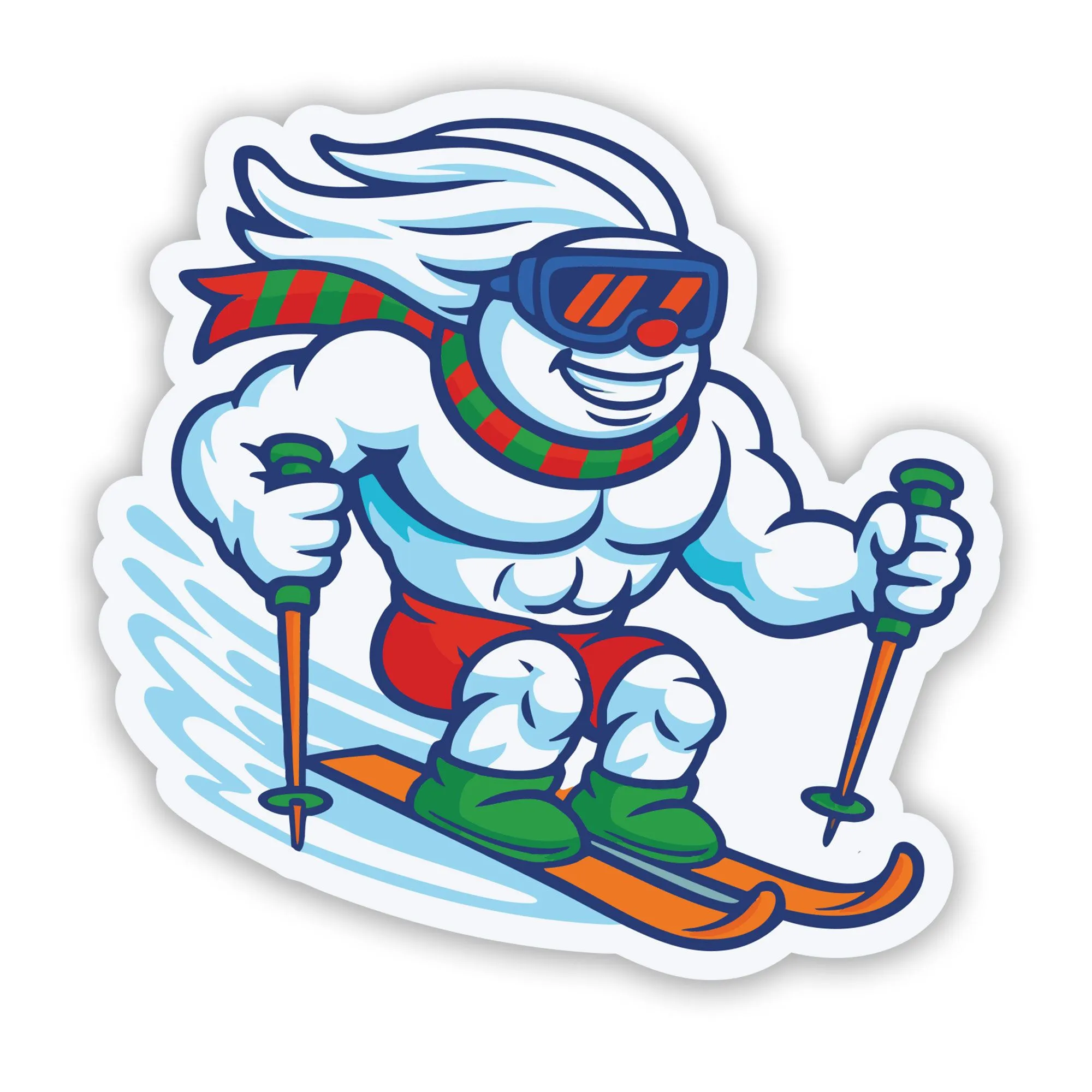 Vinyl sticker. Dishwasher safe. Great for water bottles, cars, ski helmets, laptops, iPads, and any smooth solid flat surface. Ski snowman sticker.