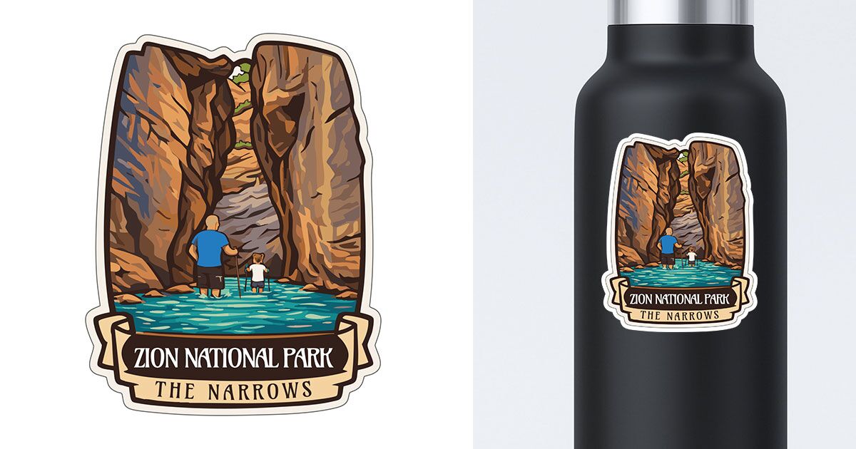 Vinyl Narrows sticker. This Narrows Zion National Park sticker is great for water bottles or any smooth flat surface. Dishwasher safe.