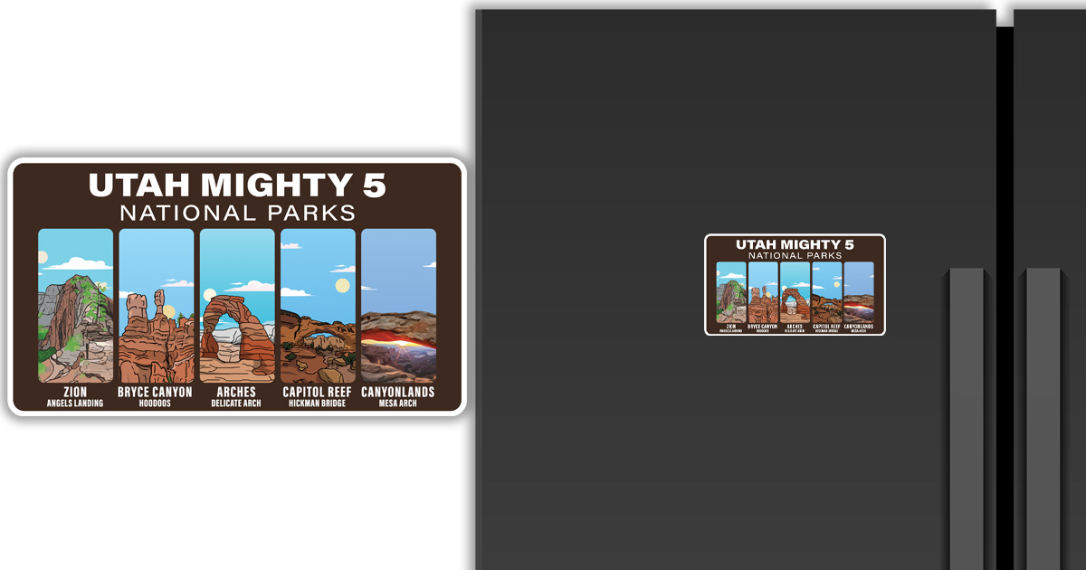 This Utah Mighty 5 magnet features designs from the 5 National Parks (Zion, Bryce Canyon, Arches, Capitol Reef, Canyonlands) that are located in Utah.