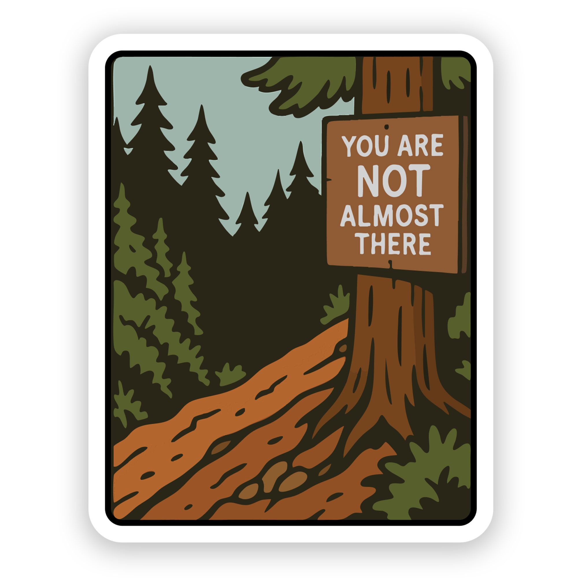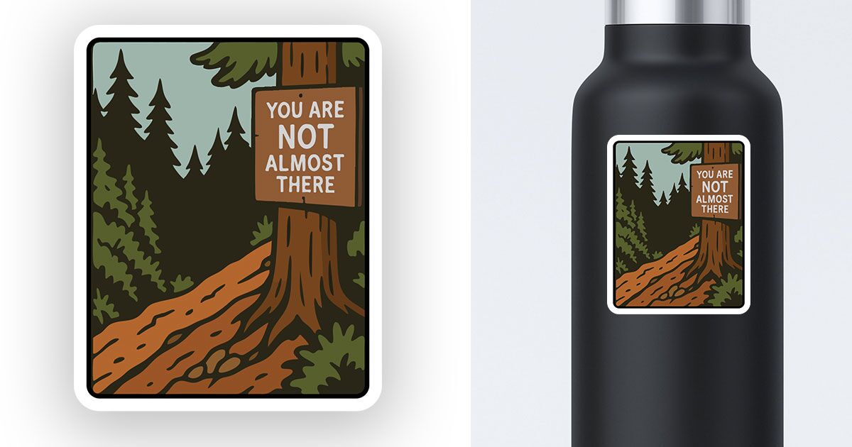 Vinyl sticker with a funny sign that says “You are NOT almost there”. Great for water bottles, iPads, laptops, and any smooth flat surface.