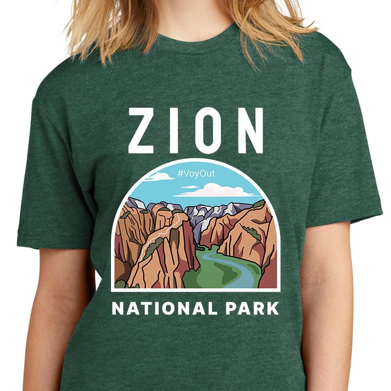 This Zion National Park T Shirt portrays one of the amazing and classic views that can be seen from the top of Angels Landing. This view can be seen as you hike to the top of Angels landing and look up canyon towards the Narrows. Off to your left you can see the Scout Lookout trail as it heads up towards the West Rim trail. Then to the left of the Scout Lookout trail you can see Refrigerator canyon.